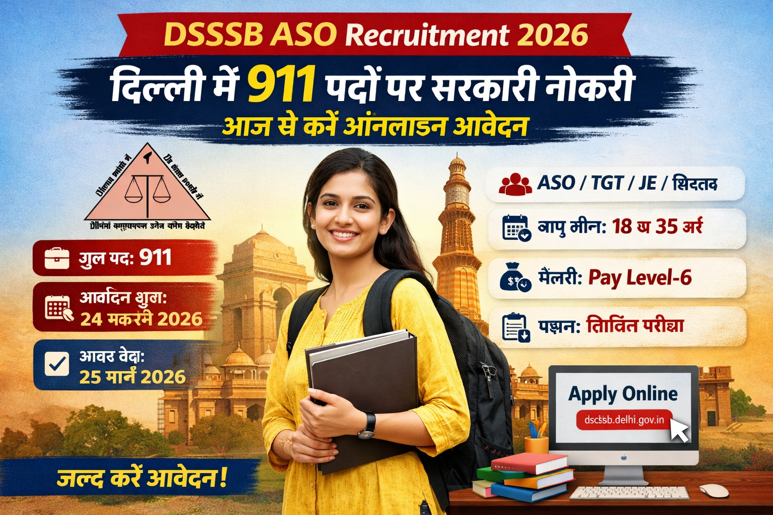 DSSSB ASO Recruitment 2026: दिल्ली में 911 पदों पर सरकारी नौकरी, आज से करें ऑनलाइन आवेदन (पूरी जानकारी)