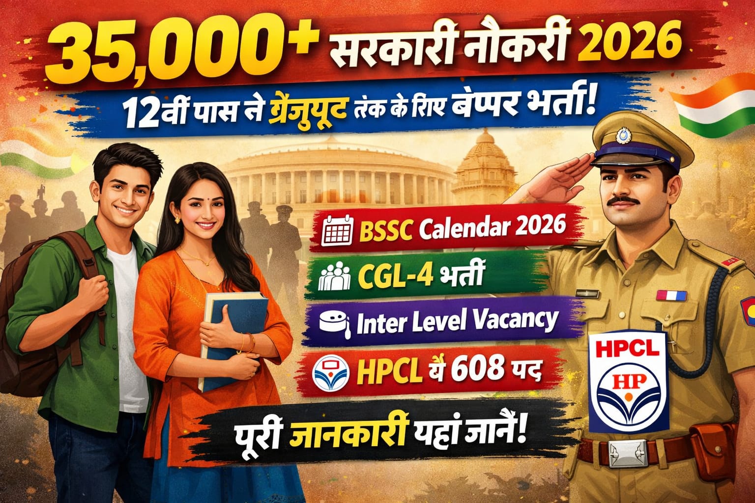 35,000+ Sarkari Naukri 2026: 12वीं पास से ग्रेजुएट तक के लिए बंपर भर्ती | BSSC Calendar, CGL-4, Inter Level & HPCL 608 पदों की पूरी जानकारी
