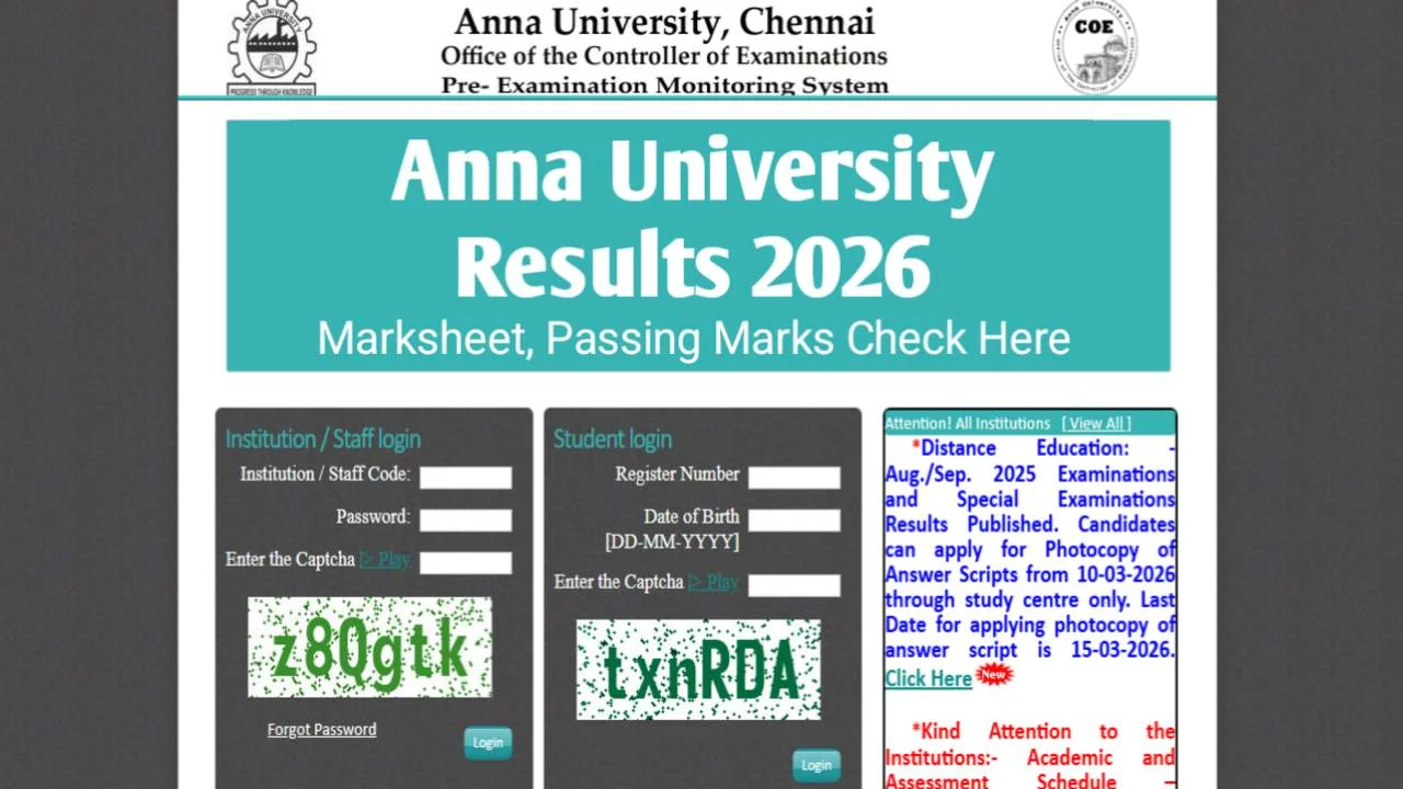 Anna University Results 2026: @coe1.annauniv.edu पर रिजल्ट होगा जारी! यहां देखें Marksheet, Passing Marks और Download Process
